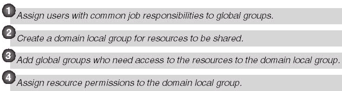 Global groups -- are usually used to organize user accounts within a single Windows 2000 domain by job responsibilities. In Windows 2000 Native mode they can be inserted into other global, local, or domain local groups on a domain. (Can also be used to contain/assign users/groups to resources in other domains or forests. In Mixed Mode (NT4 DCs on the network), only individual user accounts can be members.